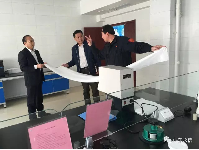 2017年3月16日下午,明水經濟開發區袁乃杰常務副主任、經發局潘立浩局長等一行蒞臨公司指導工作,公司總經理夏倫全陪同視察了水刺五線生產現場、企業技術中心,董事長史成玉先生與開發區領導進行了建設性的會談。
