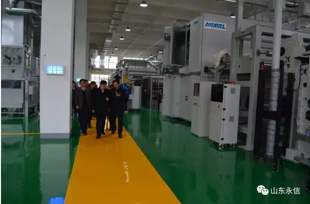 在水刺二車間,夏總向韓區長等領導介紹了水刺無紡布生產工藝、產品應用領域、所用原料、質量控制及市場前景。在水刺三車間,夏總匯報了新項目工程及水刺五線設備安裝調試進展、設備先進性及投產達效后產值等基本情況,同時還介紹了公司目前生產經營現狀、企業發展歷程、未來戰略規劃、企業管理及以人為本的企業文化等。