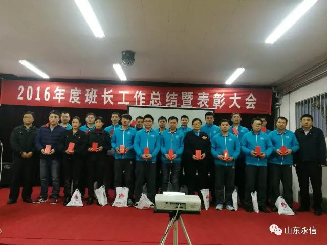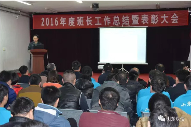 2016年12月26日,公司“2016年度班長(zhǎng)工作總結(jié)暨表彰大會(huì)”在公司多功能廳隆重舉行。永信潤(rùn)荷公司全體管理人員、班組長(zhǎng)、不在崗的車(chē)間員工參加了此次會(huì)議。