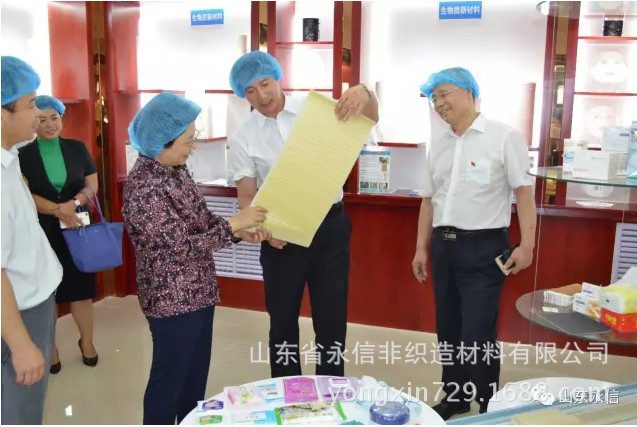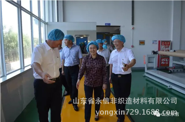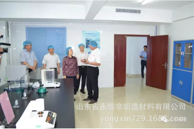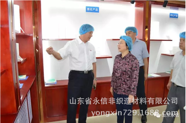在董事長陪同下,王部長一行又參觀了企業技術中心和產品展示中心,夏總向調研領導匯報了公司在產品質量管理、創新研發取得的成果,詳細介紹公司自主研發系列生物質及環保復合非織造新材料,當王擁華部長了解到該系列產品的市場前景、應用領域、產品特性時,給予了積極肯定和鼓勵,希望公司搶抓市場機遇,加速推進永信生物質新材料生產基地建設。